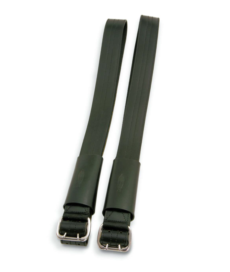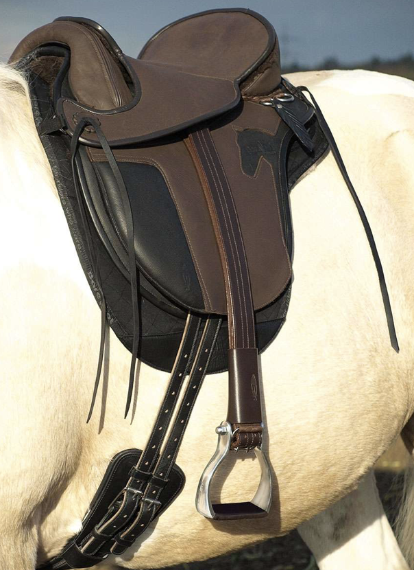 Las hebillas de estos cueros están en la parte inferior para evitar que se abulten debajo de los muslos internos. Fácil ajuste desde el sillín. Forro de nailon para evitar estiramientos. Estos cueros anchos son ideales para usar sin chaparreras ni botas, ya que no pellizcarán la parte inferior de la pierna.