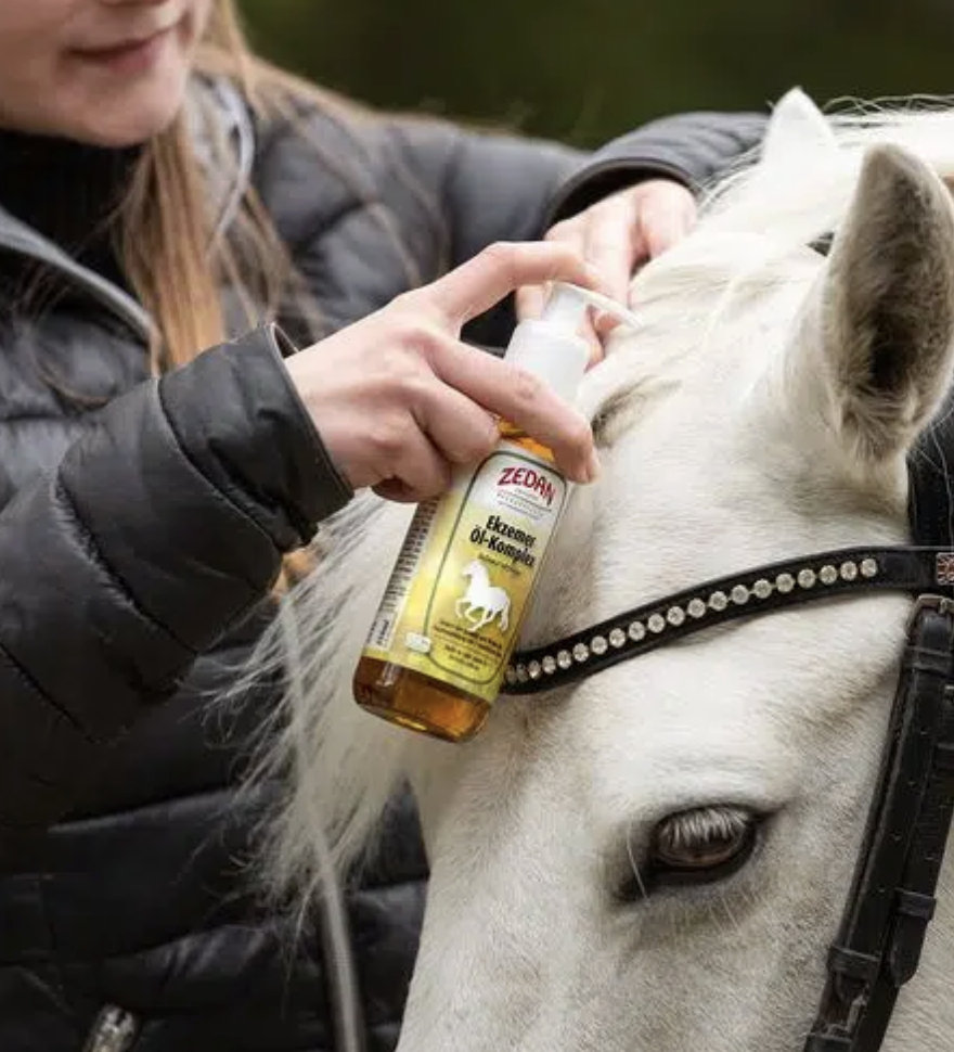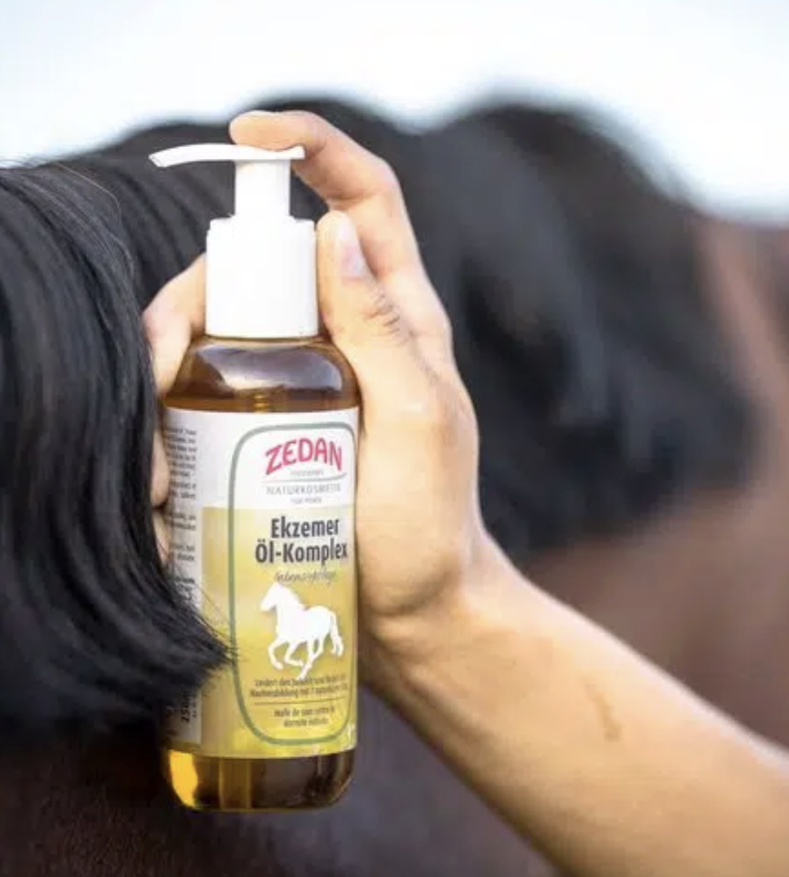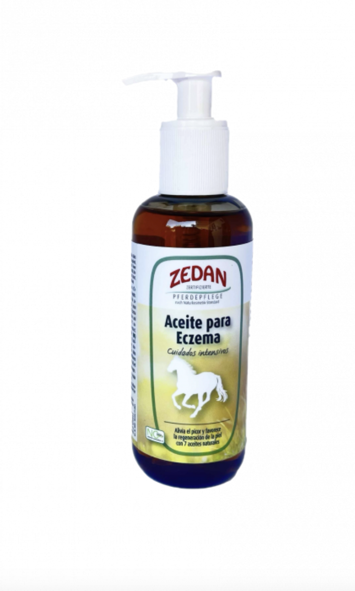 El ZEDAN Aceite para Eczemas es un cuidado especializado de origen natural que ayuda a calmar irritaciones, aliviar el picor y favorecer la regeneración de la piel dañada en caballos. Su fórmula rica en aceites vegetales e ingredientes calmantes proporciona una hidratación profunda y un efecto reparador, mejorando el bienestar cutáneo de forma eficaz y suave.