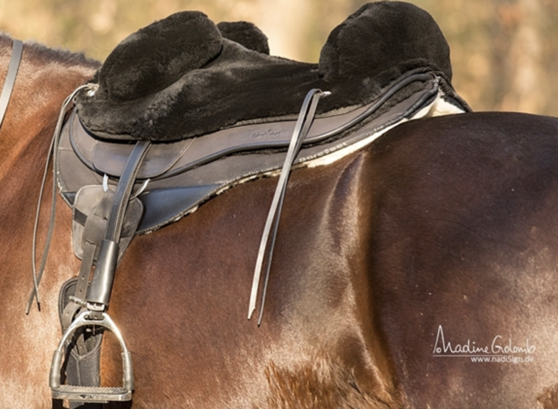 El modelo Barefoot ‘Happy Valley’ se desarrolló después de escuchar los comentarios del jinete, que deseaba una Montura de piel de oveja que no causara problemas en la espalda del caballo, sino que también ofreciera la comodidad de una Montura de piel auténtica.