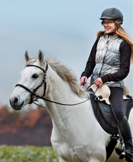 La brida «Contour Trail» está hecha de cuero. La testera tiene una forma especial curvada para que la presión no se aplique en un solo punto, sino que se distribuya, y así no crear ningún punto que pueda afectar a largo plazo.