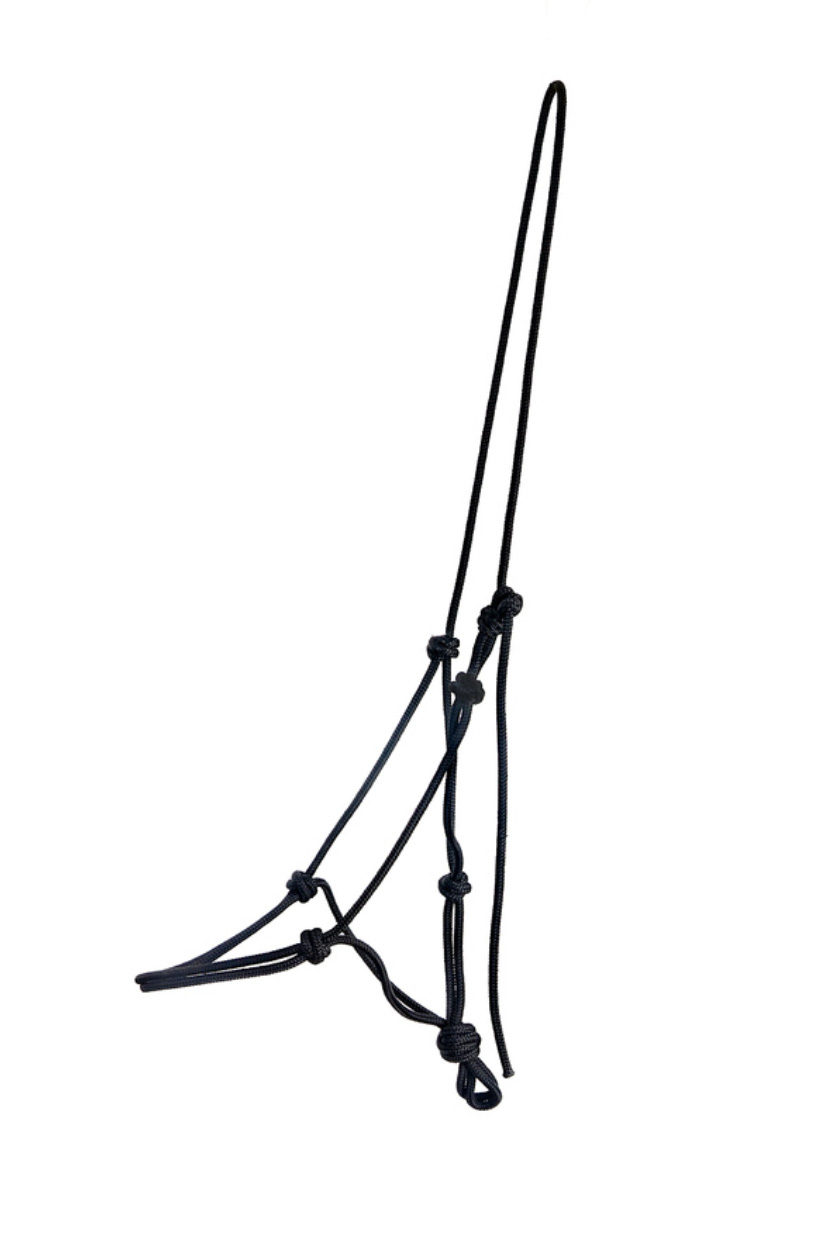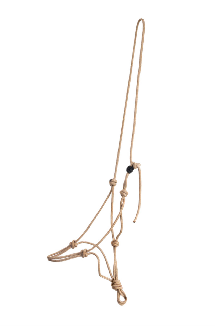 Una cabezada de cuerda resistente, cómoda y práctica para el trabajo diario con tu caballo. Está fabricado con cuerda de alta calidad, flexible y duradera, que se adapta bien a la cabeza del caballo y proporciona un buen control durante el entrenamiento.