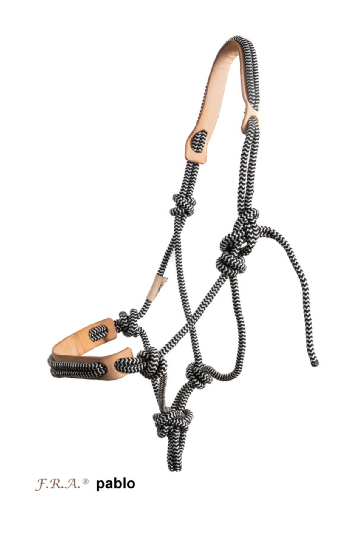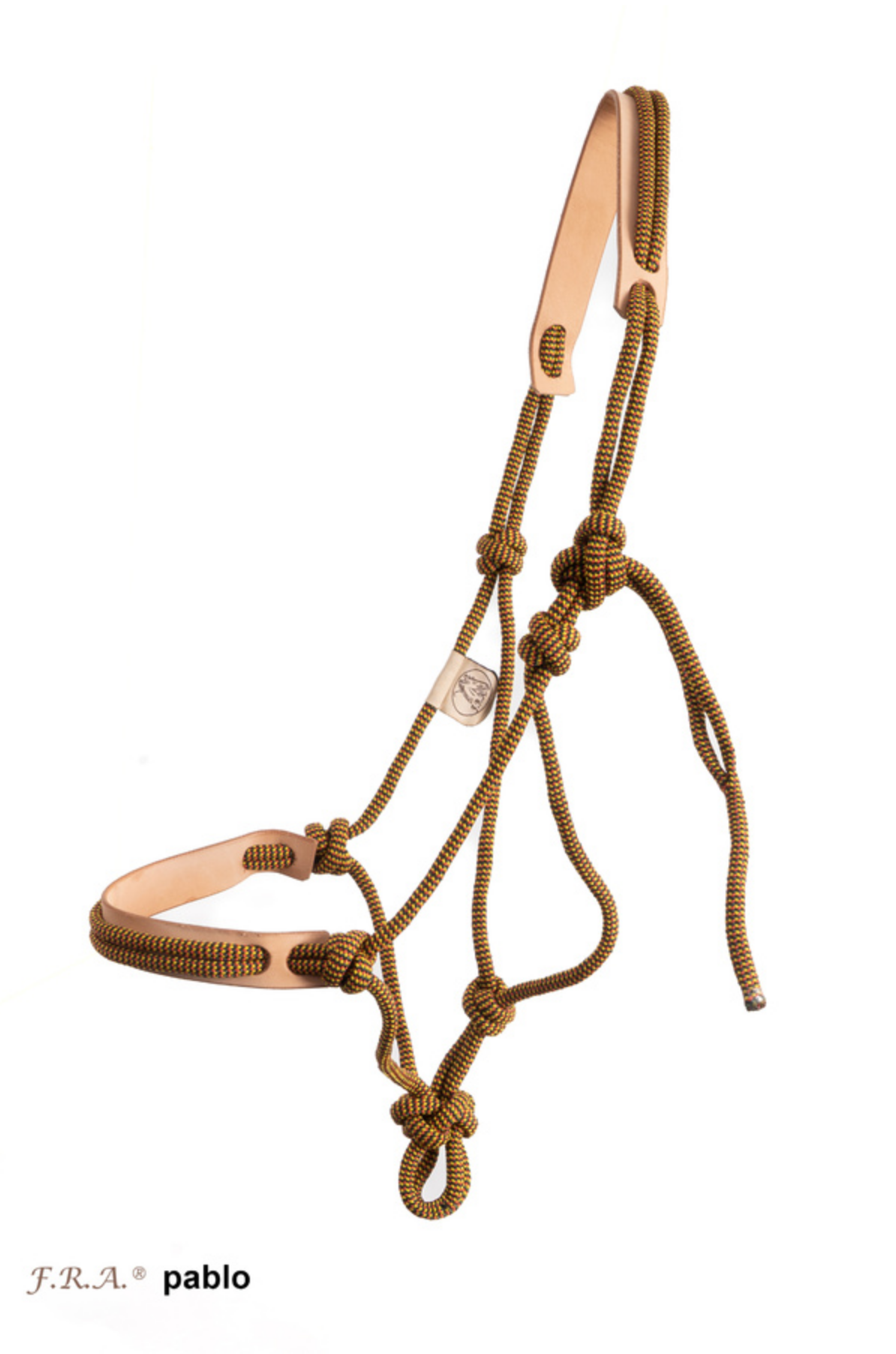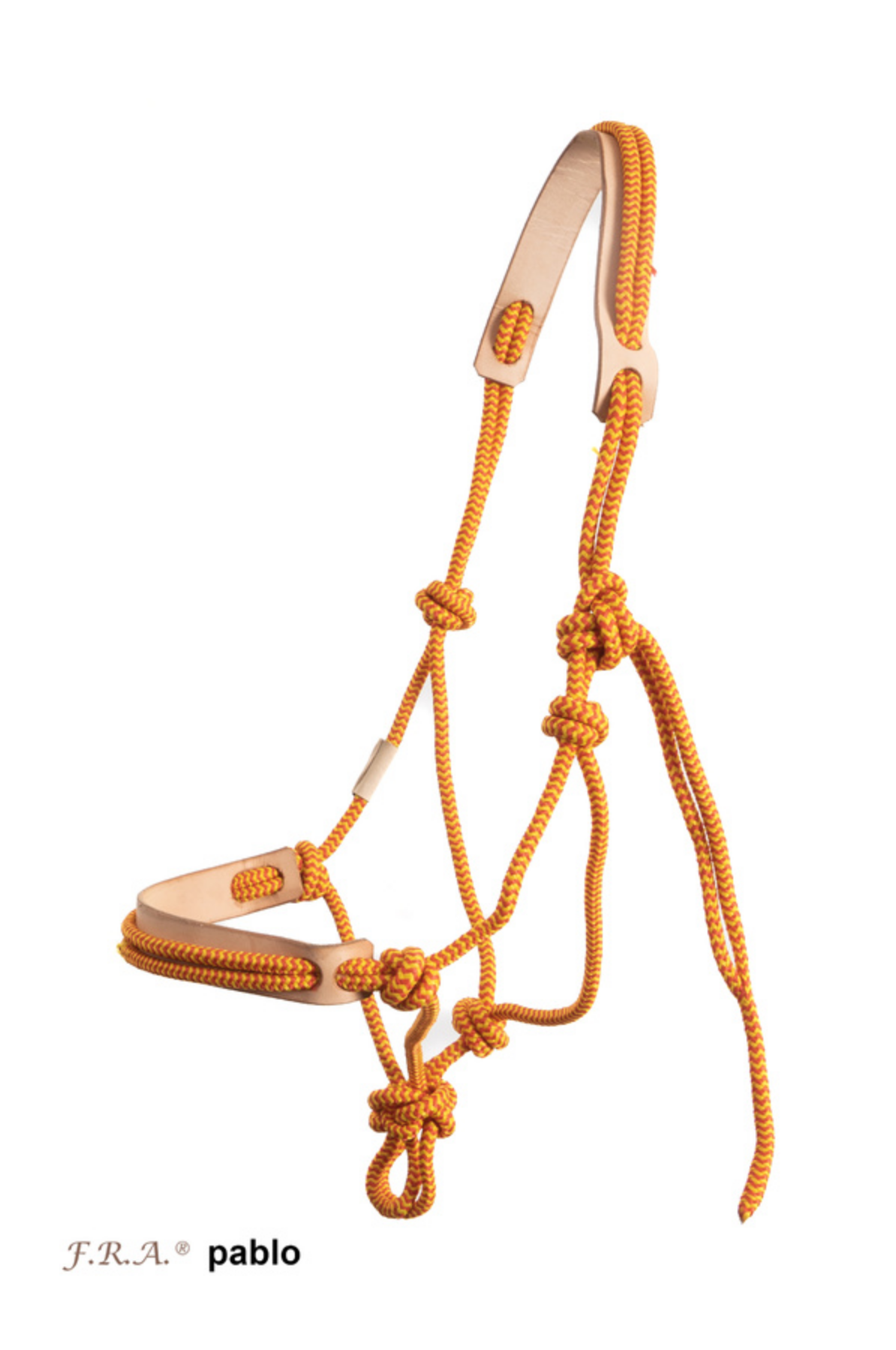 Las cabezadas de entrenamiento profesional para montar de 7 mm, están hechas de polipropileno, con un añadido en el cuello y la nariz de cuero para proteger éstas áreas mas sensibles.