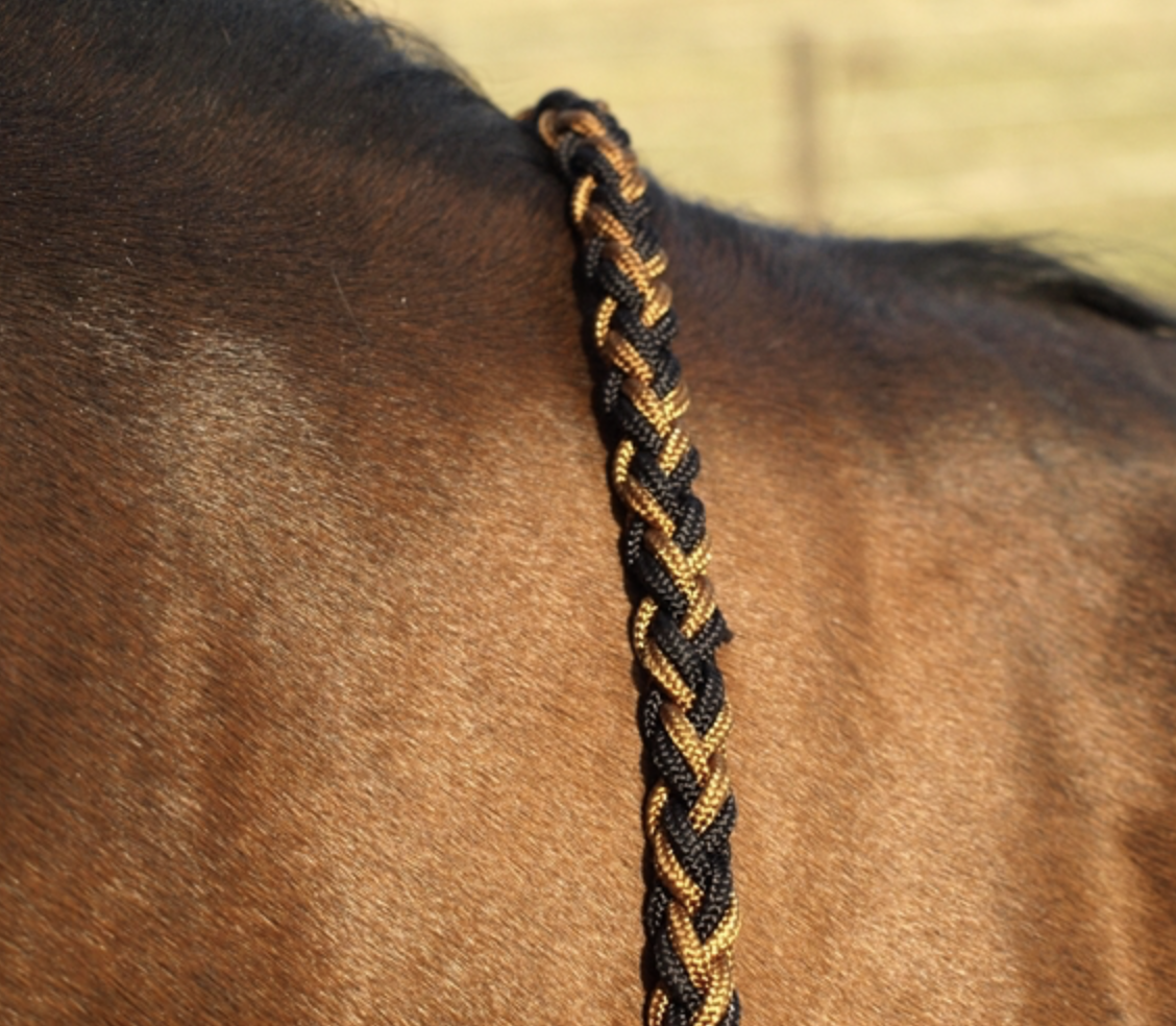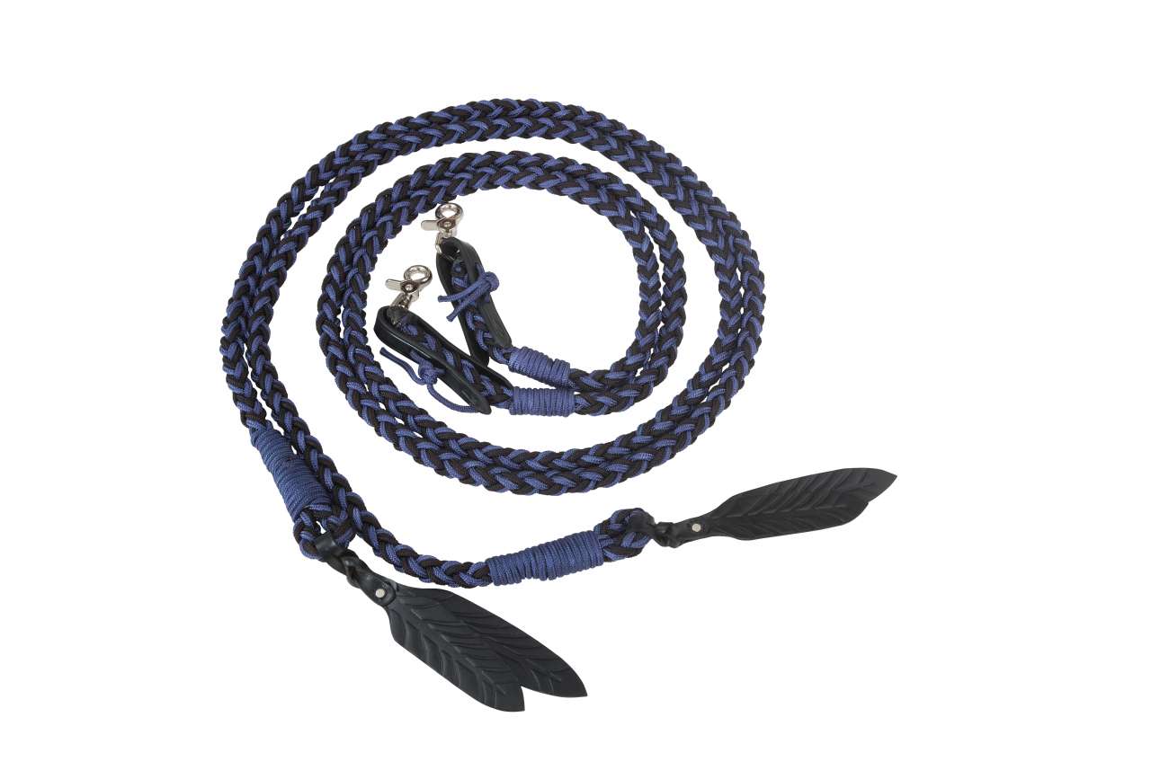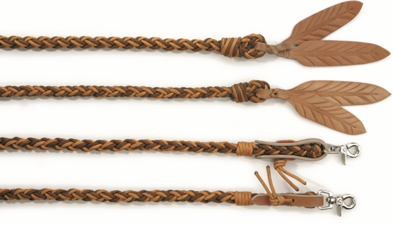 Riendas abiertas y redondeadas hechas de cuerda trenzada.