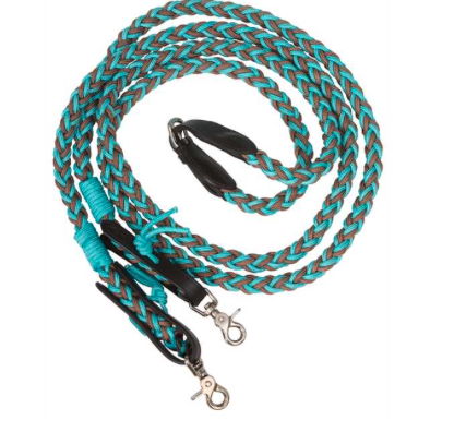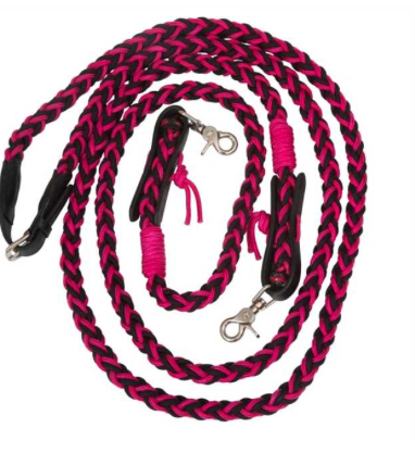 Riendas trenzadas redondas hechas de cuerda de montaña trenzada a mano. Permite una fácil apertura. Longitud cómoda de 3’10 m de largo.
