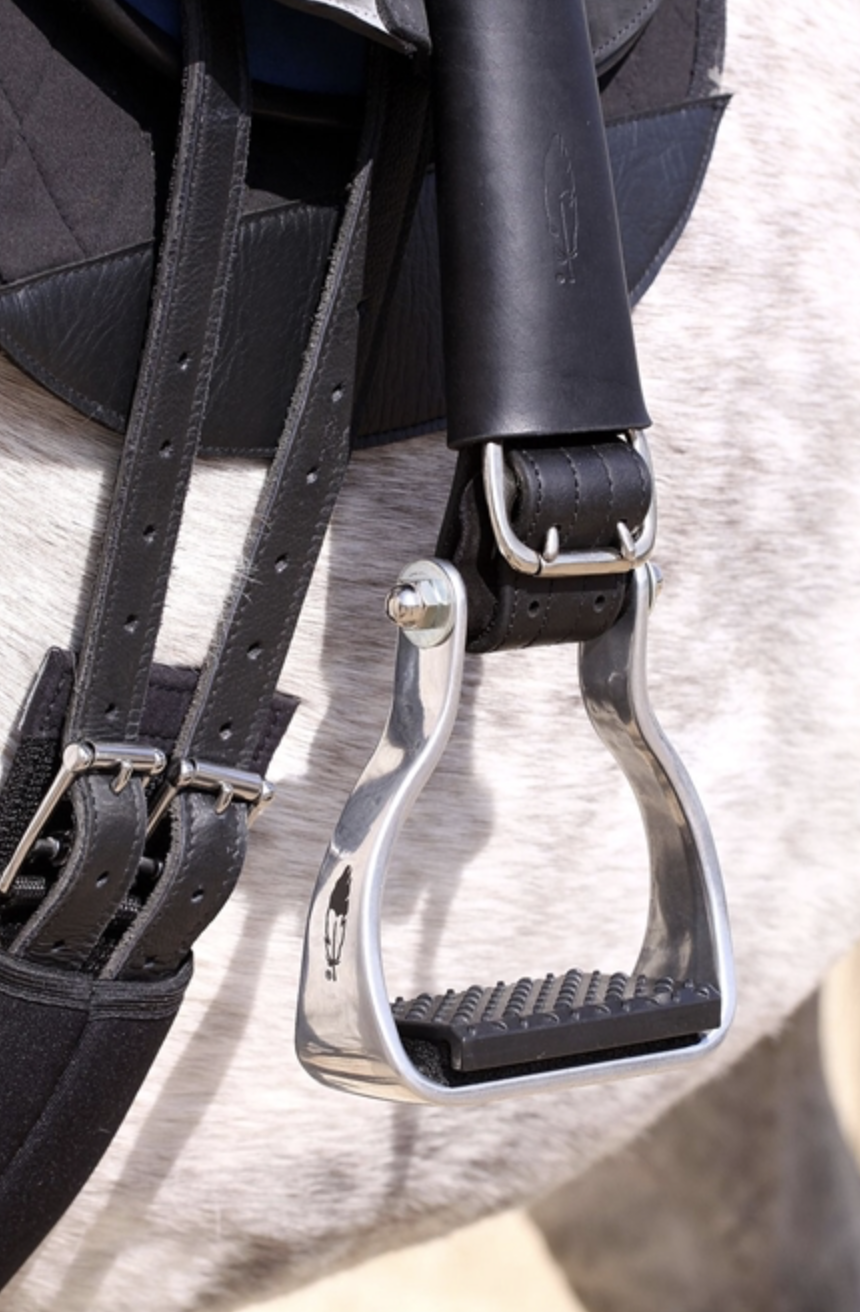 El estribo elástico amortigua los choques, lo que resulta en una mayor comodidad para el caballo y el jinete.