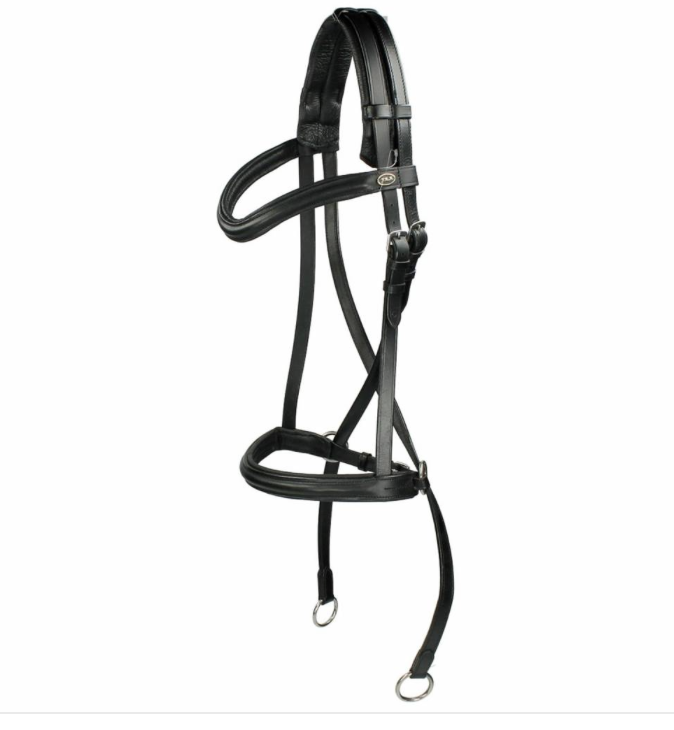 Brida con sistema cruzado Bitless Bridle Indy de FRA con una ligera banda protectora en la parte superior