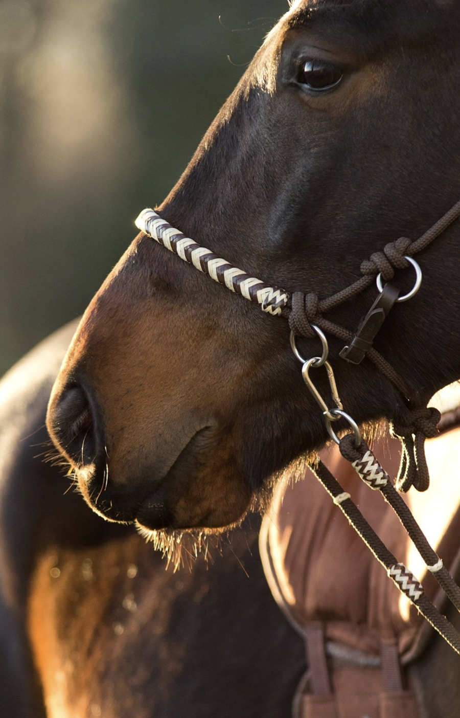 Importante no dejar al caballo suelto en el paddock con ésta cabezada. No es una cabezada break Away, ¡en caso de querer liberarse le sería difícil!