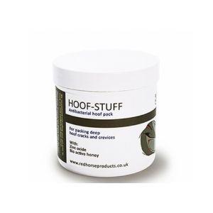 Hoof Stuff es una pasta indicada para rellenar las cavidades y los cuartos profundos de los cascos equinos. El producto contiene únicamente ingredientes naturales no tóxicos, seguro y fácil de usar. La textura fibrosa por su contenido de algodón permite que actúe más tiempo que otros productos. Hoof Stuff es muy útil tanto en las cavidades de las pinzas como en las de los abscesos y en las infecciones del surco central.