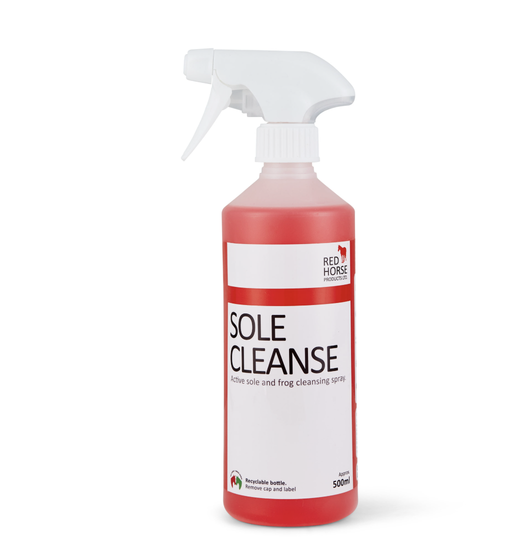 Para problemas de mal olor en los cascos, eliminación de grietas en la línea blanca o ranilla. Aplicación regular, 1 vez por semana, para caballos propensos a problemas de mal olor en sus cascos. Se puede aplicar a diario hasta que el problema disminuya. Sole Cleanse es muy eficaz, sin necesidad de introducir ingredientes necrotizantes propios de los tratamientos tradicionales, como el bórax, los blanqueadores, el peróxido, etc. Sole Cleanse no solo ayuda a destruir los microbios que producen el ennegrecimiento y el mal olor en la suela y la ranilla de los cascos, sinó que también ayuda en la regeneración natural de los tejidos sanos, sin producir más tejido muerto en la infección.