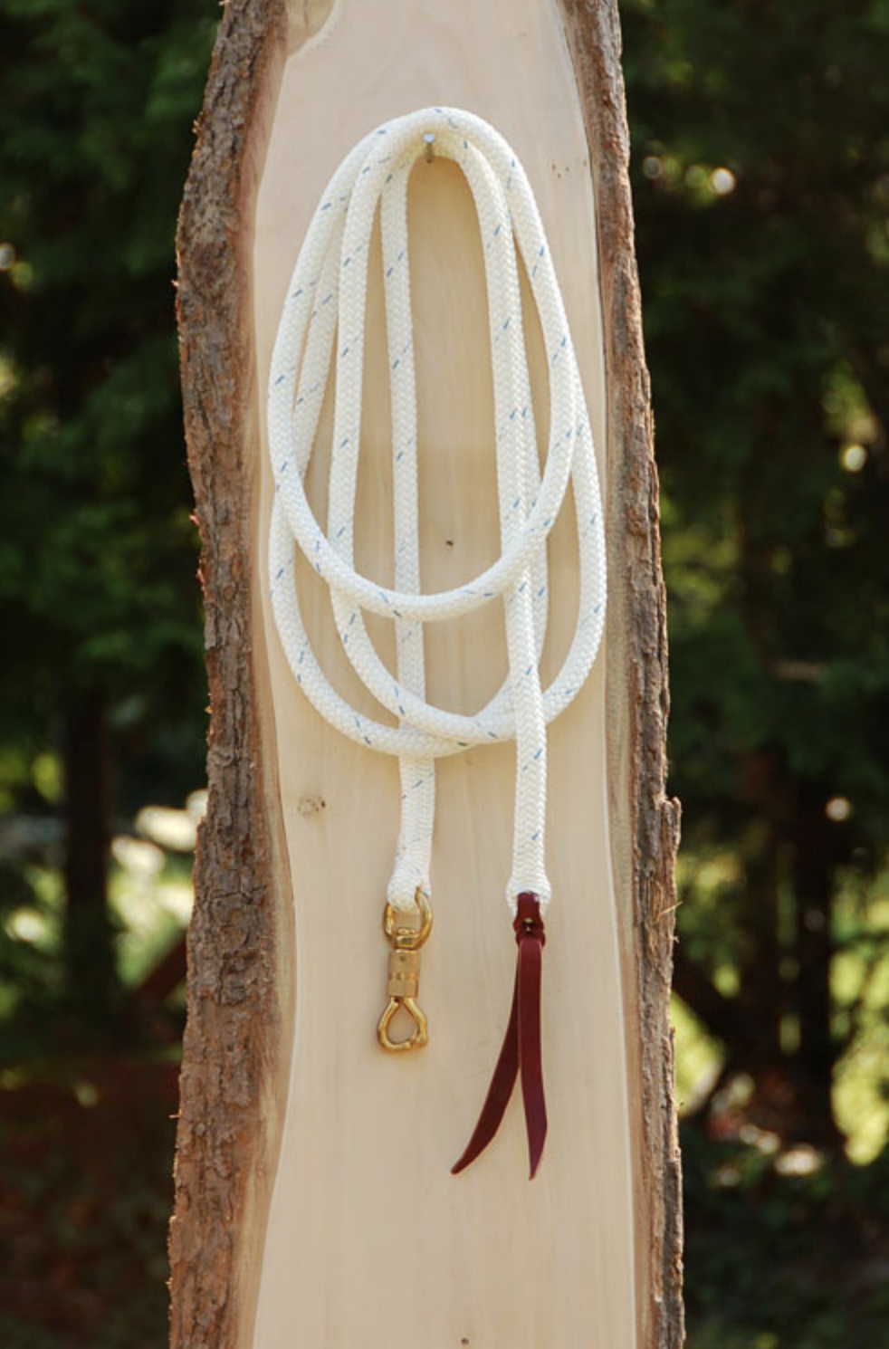 - La cuerda está formada por 8 hilos trenzados, lo que le confiere una resistencia inigualable y una flexibilidad perfecta. El extremo de la cuerda es un popper (lengüeta de cuero) que nos permite pedir al caballo, con mayor precisión, que respete nuestro espacio o que mueva sus extremidades, por el movimiento y ruido que hace cuando se agita.