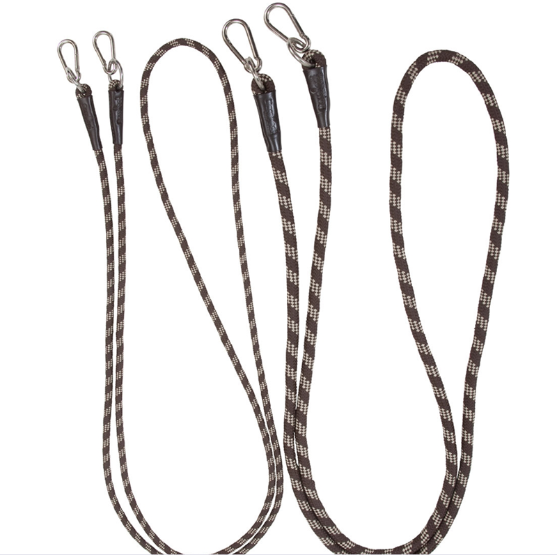 Riendas de cuerda ligera fabricadas en polipropileno con alma de algodón. Con mosquetón.